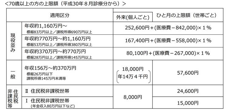 画像引用元:高額療養費制度を利用される皆さまへ(平成30年8月診療分から)(厚生労働省保険局)